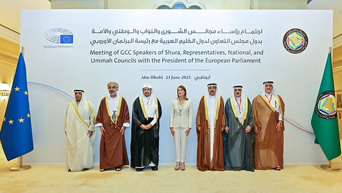 The Gulf-European Parliamentary Meeting in Abu Dhabi brought together leaders from the GCC and the European Parliament, including Oman’s Shura Council, led by Khalid Hilal Al Maawali. The meeting focused on enhancing cooperation in economic, environmental, and humanitarian areas.